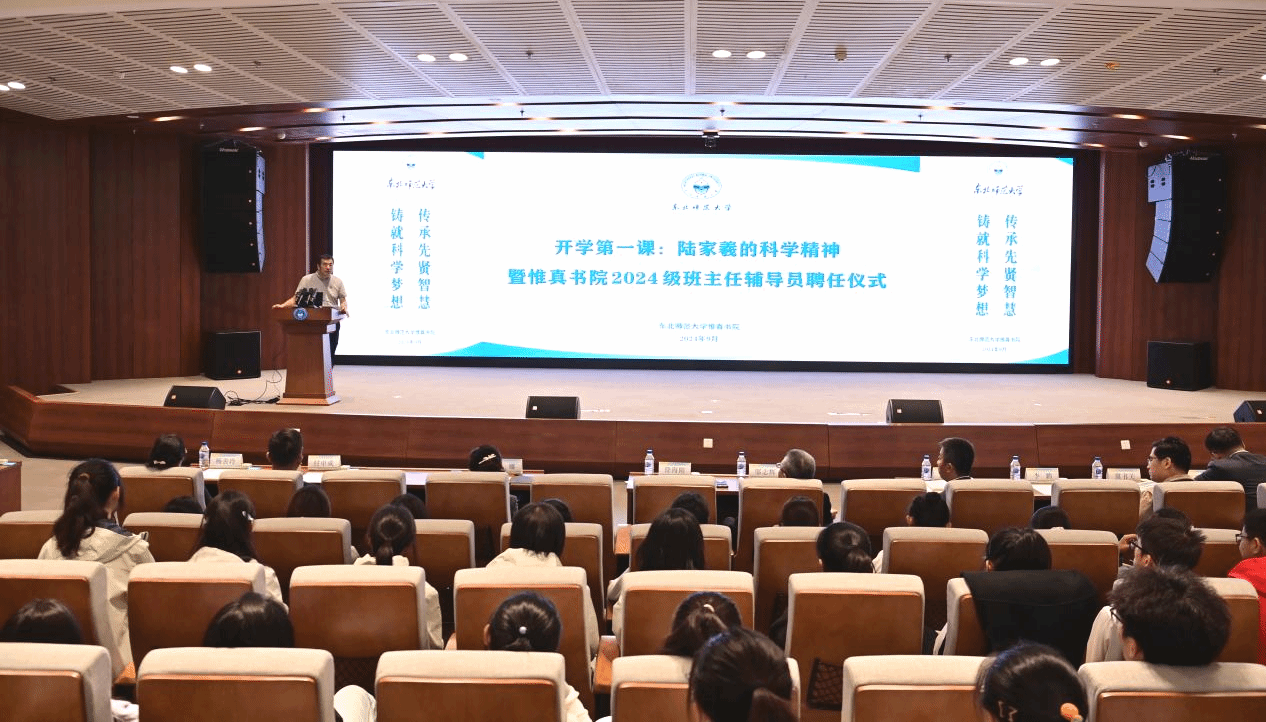 9月22日,我校惟真书院2024级班主任、辅导员聘任仪式暨“开学第一课”活动在惟真楼二楼报告厅举行。校长徐海阳、副校长邬志辉出席活动,党委学生工作部、教务处、研究生院、校团委、历史文化学院、数学与统计学院、物理学院、生命科学学院相关负责人,历史学日知试验班、数学与物理陆家羲试验班、生物学郝水试验班的班主任、辅导员以及惟真书院全体2024级新生参加了本次活动。活动由惟真书院负责人王庆勇老师主持。徐海阳在讲话中回顾了学校拔尖人才培养的探索和实践,...