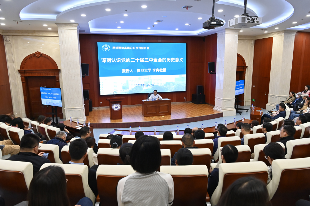 9月27日,复旦大学马克思主义学院院长、马克思主义研究院院长李冉教授,作客我校“思想理论高端论坛”,解读党的二十届三中全会精神。党委副书记兼副校长常青出席并主持报告会,教育学部、文学院、物理学院近200名教职工参加了报告会。 报告中,李冉教授紧扣“四个关键”,深入阐释了党的二十届三中全会精神的历史意义。他认为,党的二十届三中全会深刻阐述了进一步全面深化改革、推进中国式现代化的重大意义和总体要求,擘画了以中国式现代化全面推进中华民族伟大复兴的战略举措,...