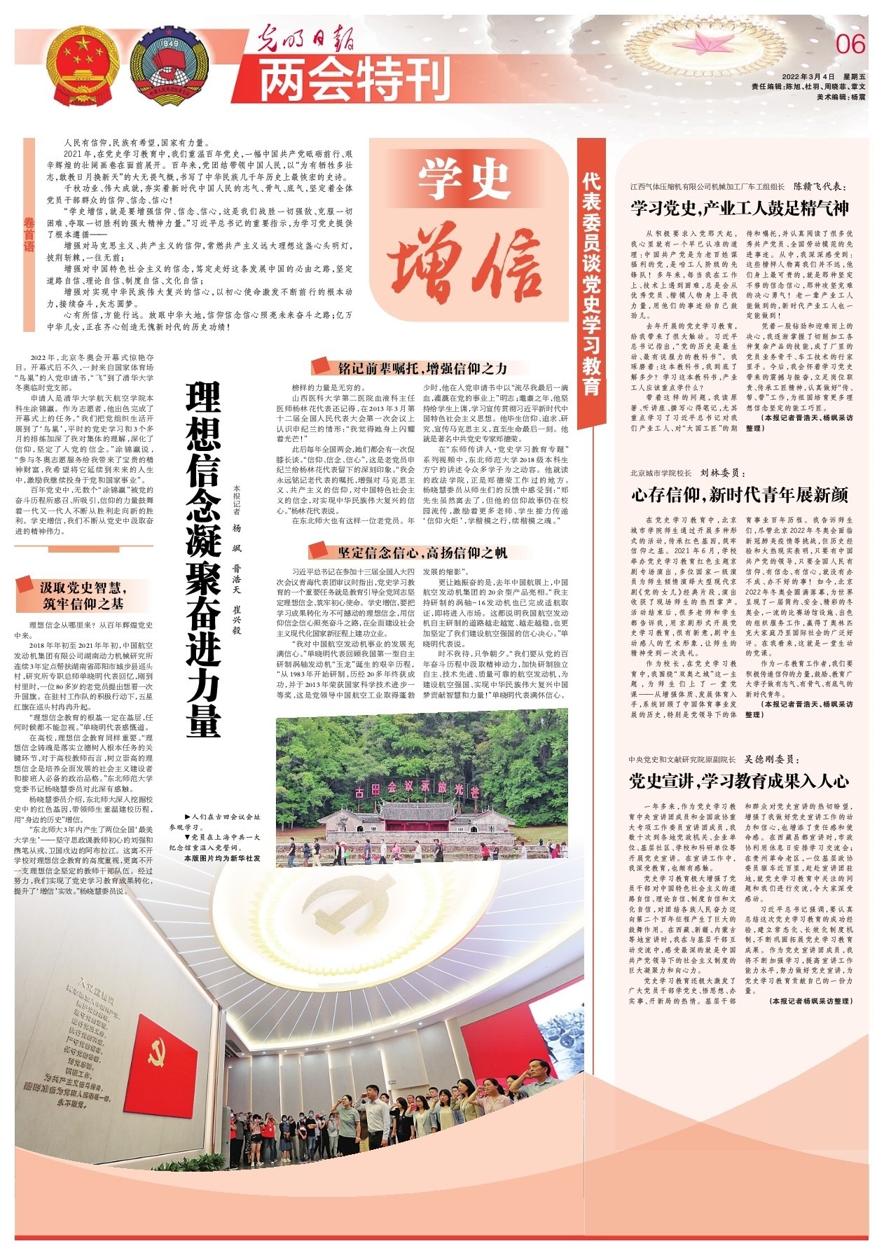 3月4日,《光明日报》两会特刊开设了“学史增信——代表委员谈党史学习教育”专题栏目,并以“理想信念凝聚奋进力量”为题,围绕党史学习教育中理想信念教育的主题,采访了全国政协委员、我校党委书记杨晓慧。杨晓慧委员表示,理想信念铸魂是落实立德树人根本任务的关键环节,对于高校教师而言,树立崇高的理想信念是培养全面发展的社会主义建设者和接班人必备的政治品格。杨晓慧委员介绍,东北师大深入挖掘校史中的红色基因,...