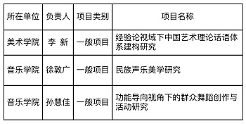 日前,2019年度国家社科基金单列学科(艺术学)项目立项名单公布,我校共有3名教师获得国家社科基金单列学科(艺术学)项目一般项目立项,资助金额共54万元,立项排名位居全国第六位。 2016年,学校颁行《关于进一...