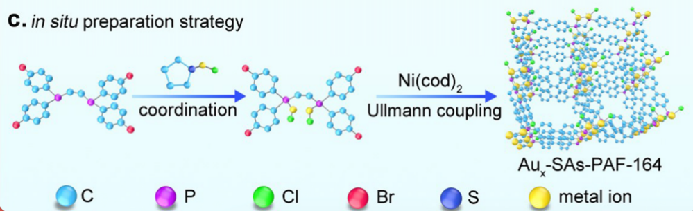 图2. 基于PAFs的高负载量金单原子催化剂的设计合成示意图