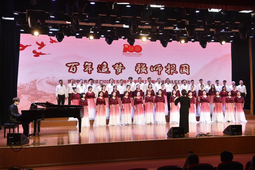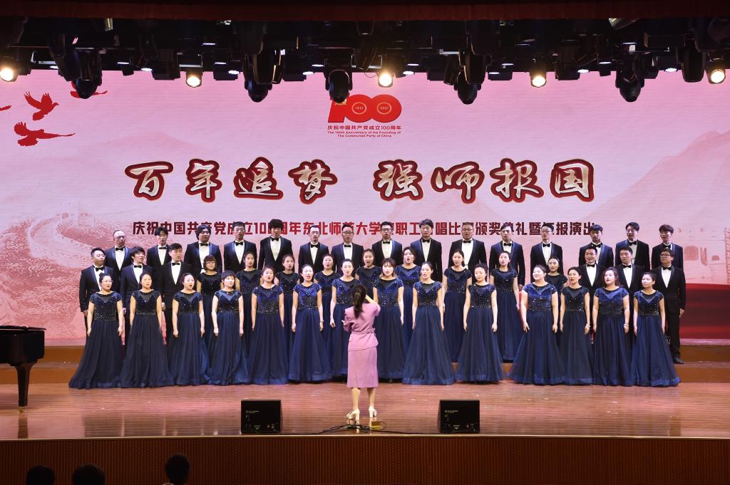 此次合唱比赛共有28支队伍参赛,比赛已于6月10日、11日完成。自发出比赛通知以来,学校机关、各学院(部)和直附属单位高度重视,热烈响应,参赛队员热情高涨,克服重重困难,积极利用业余时间排练。各参赛队伍阵容整齐、气势恢宏,服装庄重华美,歌声高亢嘹亮。受邀参加汇报演出的获奖队伍作为合唱比赛参赛队伍的优秀代表,更是以昂扬的精神状态和饱满的热情唱出了东师人的激情、展现了东师人的风采,为观众们呈现了一场精彩绝伦的视听盛宴。活动结束后,广大教职工纷纷表示,学唱这些歌颂党、歌颂祖国、歌颂人民的歌曲,不仅让大家感受到合唱旋律的美妙铿锵,更提振了士气,形成了爱党爱国、爱校荣校、和谐奋进的浓厚氛围。