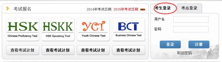1)考生登录汉语考试服务网 www.chinesetest.cn, 注册用户。