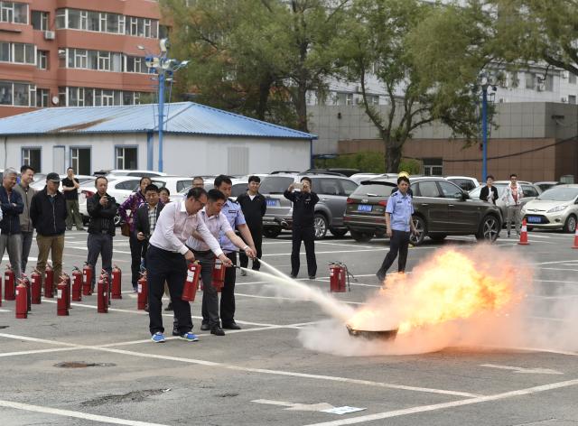 活动中,全体工作人员首先在学生就业指导服务中心三楼多功能厅观看了我校2017年消防安全宣传片,视频和影像资料生动地体现了高校消防安全工作的重要性,为大家敲响了警钟。随后,保卫处的同志从“消防安全的总体形势”“火灾成因及其危害”“常见消防设施设备”“校园防火注意事项”等方面向大家生动详细地讲解了火灾防控知识。随后,全体人员以会场为出发点、演练场地为目的地,井然有序地进行了紧急逃生疏散演练。在模拟火场灭火环节,保卫处的同志边演示边讲解,让大家直观地了解了灭火器、消防水带、过滤式呼吸器、逃生缓降器等防火设施的使用方法,随后机关部分同志还参加了干粉灭火实战演习。