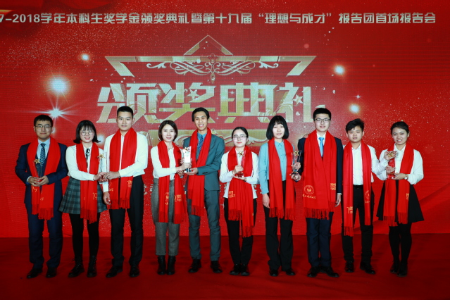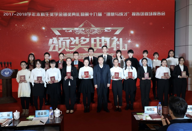 12月22日,党委学生工作部、学生处组织召开了2017-2018学年本科生奖学金颁奖典礼暨第十九届“理想与成才”报告团首场报告会。