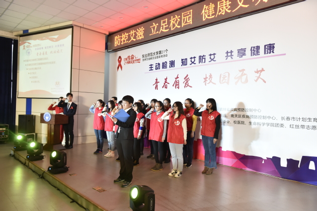 12月2日,由吉林省卫健委、吉林省疾病预防控制中心主办,长春市卫健委、长春市疾病预防控制中心、南关区卫健委、南关区疾病预防控制中心协办,我校承办的“青春有爱 校园无艾”2018年世界艾滋病日主题宣传教育活动在我校举行。
