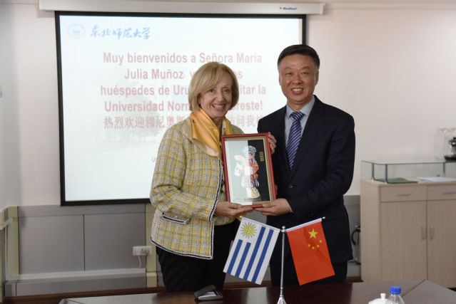 4月13日,乌拉圭教育和文化部部长玛利亚·胡利娅·穆尼奥斯访问我校。乌拉圭总统府科技处主任爱德华多·曼塔、乌拉圭共和国大学副校长阿尔瓦罗·蒙布洛、乌拉圭科技大学理事会主席鲁道夫·希尔维拉,国际关系处处长拉斐尔·阿尔瓦里沙、乌拉圭驻华使馆秘书塞尔西奥·德拉瓦耶、乌拉圭农科院董事会主席何塞·路易斯·雷佩拖等随行参访。