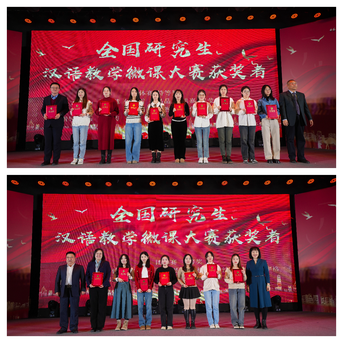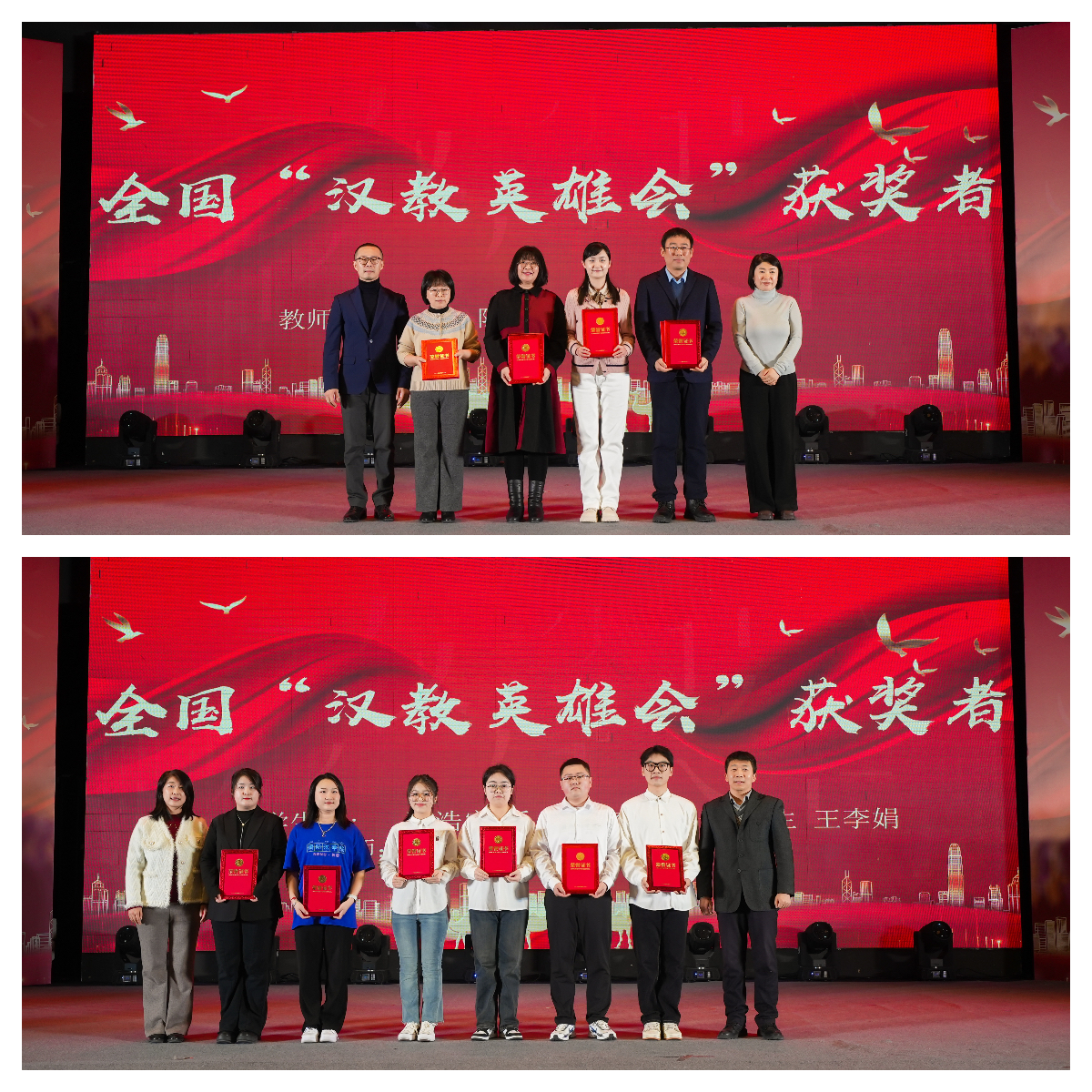 在颁奖环节中,王延与参会各单位领导分别为获得表彰的师生颁奖并合影留念。