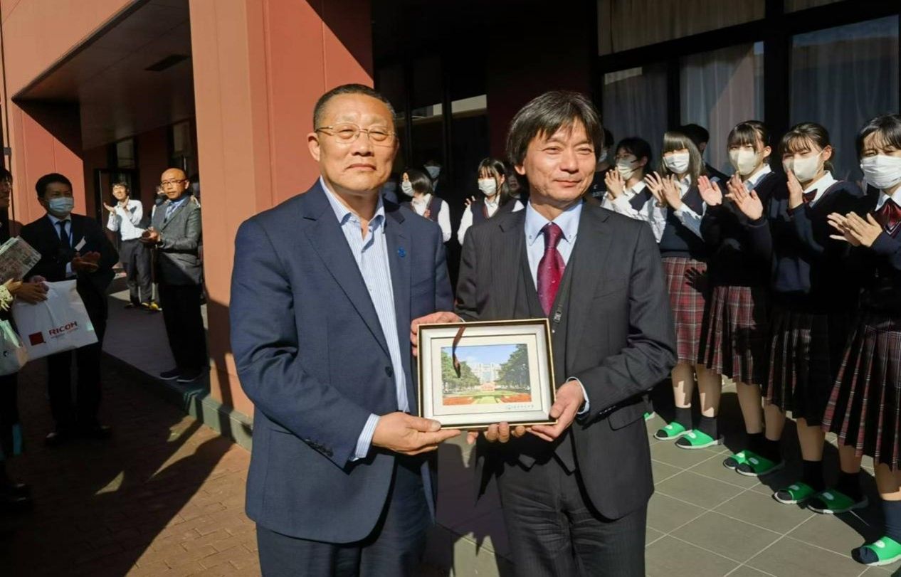 5月14日,我校师生艺术团一行访问日本鸟取县,鸟取县副知事亀井一贺接待代表团一行。当天下午,师生艺术团访问鸟取县敬爱高中并与敬爱高中校长倭岛庆吾进行座谈,随后,艺术团为敬爱高中全校560余位师生带来了精彩的文艺演出。