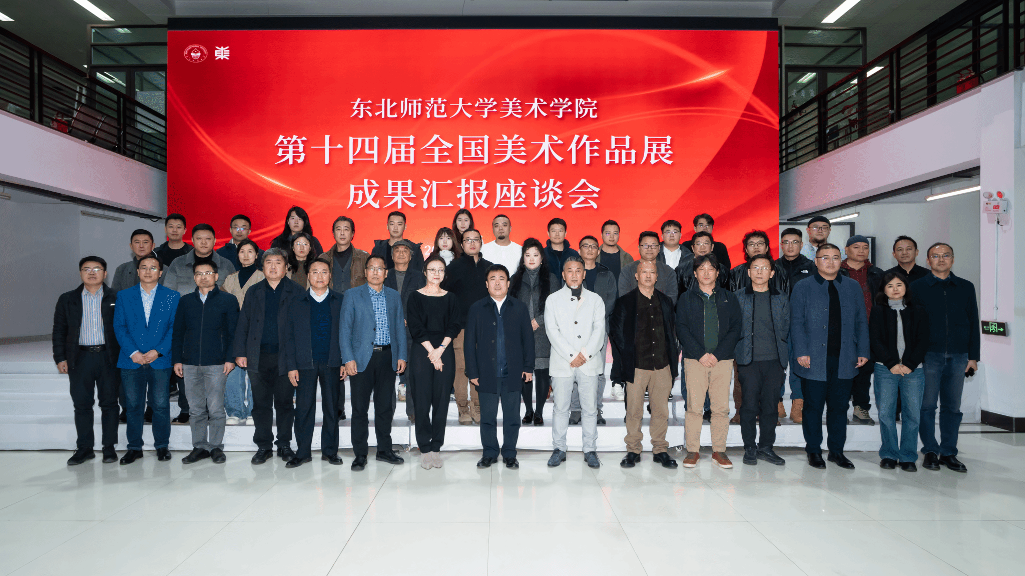 本次座谈会旨在进一步促进学科可持续发展,深入推进学校高质量建设。座谈会上,美术学院党委书记张群进行总结汇报,获奖、入选师生代表以及学科带头人相继发言。金奖获得者孙研副教授介绍了作品《同唱》的创作历程和深刻蕴含;入选教师代表刘治龙教授介绍了学院设计学方向在本届美展中的相关成果;入选研究生代表李云翰介绍了学习中对学院课程体系和教学体系的深刻体悟。学科带头人殷晓峰教授、宋学智教授回顾了学科发展历史并介绍了相关发展情况。