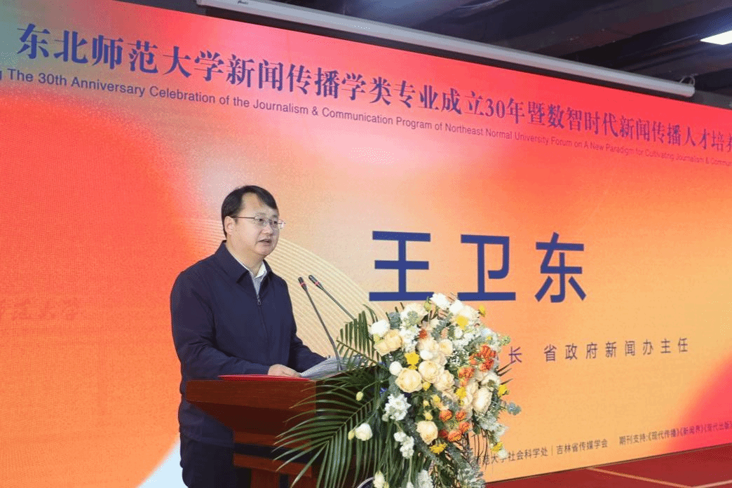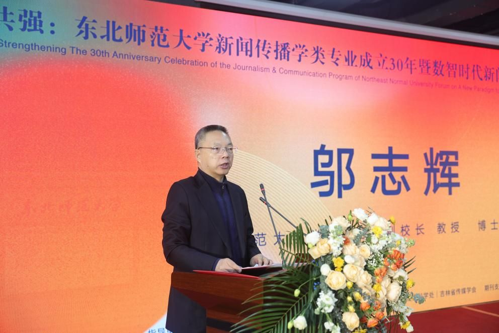 邬志辉在致辞中回顾了我校新闻传播类专业建立以来的发展道路,指出东师新闻传播学类专业发展始终与时代同频共振,面向人才振兴国家战略,服务传媒业深度融合与创新发展现实需求,作出了突出的历史贡献。他希望传媒科学学院(新闻学院)能积极应对数智时代和人工智能新挑战,提高部校共建与学科建设的专业水平,为新闻传播学专业发展贡献力量。