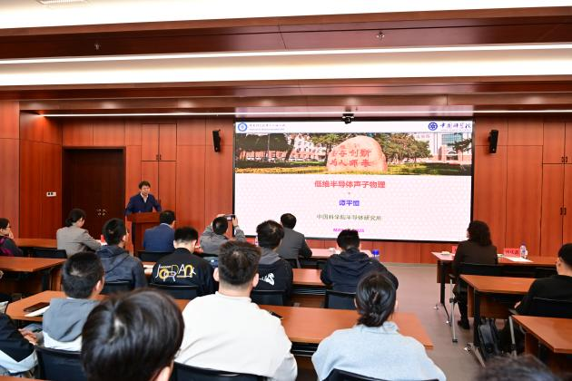 座谈会后,谭平恒为物理学院师生作了题为《低维半导体声子物理研究》的学术报告。他系统阐述了声子物理在半导体材料性能调控中的关键作用,重点介绍了以石墨烯、二硫化钼为代表的二维材料中声子态的新奇特性,以及团队在声子探测技术、光—物质相互作用调控等方面的最新突破。报告结束后,他与物理学院师生围绕低维材料声子工程、半导体器件研发等问题展开热烈讨论。