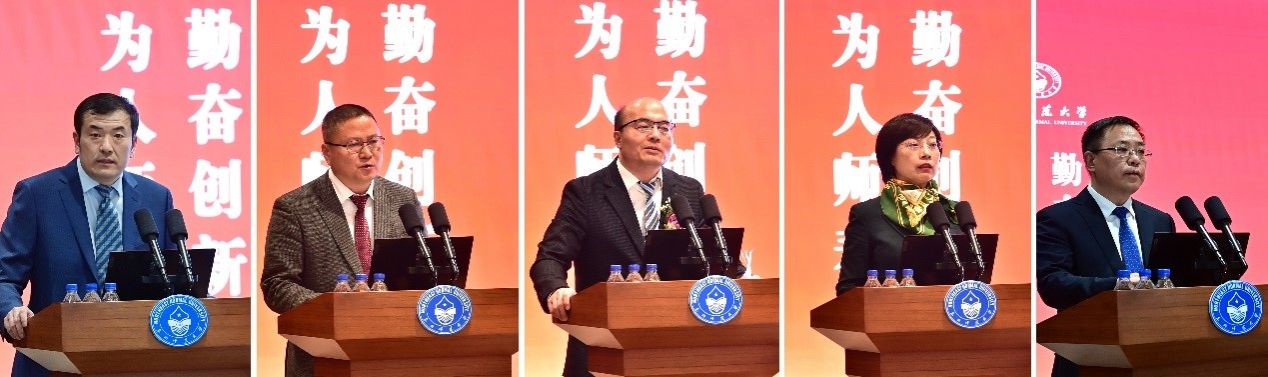 会议首先对2023年新晋国家高层次人才进行了表彰。学校领导分别为获批的5位国家领军人才和10位国家青年人才颁发证书、奖杯并合影留念,向他们的成功入选表示祝贺。随后,化学学院朱广山、教育学部秦玉友、环境学院周丹丹依次做了经验交流发言,从“如何驱动学院高层次人才队伍建设”“如何保持工作活力、问题敏感及话语引领”“如何超越自己、回馈学院”等方面,分别介绍了基层单位促进人才队伍发展建设的主要做法和个人成长成才经历体会。最后,徐海阳校长以“爱才、聚才、育才、用才,加快推进学校人才工作高质量发展”为主题,聚焦我校人才工作的“背景与意义”“发展与现状”“挑战与机遇”“目标与举措”四个方面作专题报告。